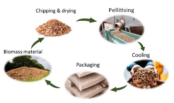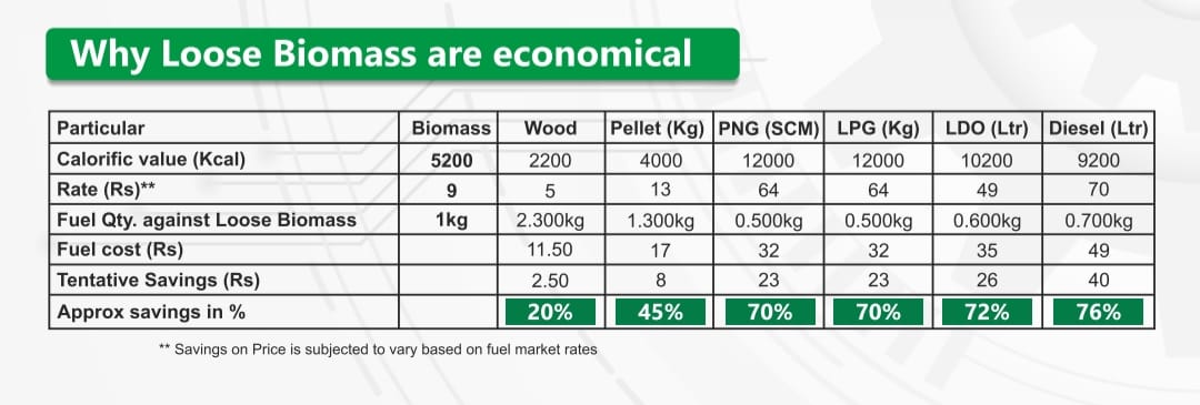 The density of pellet fuel is substantially higher than the agro waste (40 lbs. per cubic foot vs 23 lbs. For straw material).